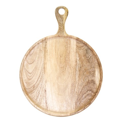 Each Round Mango Wood Serving Board with Handle in Natural is handmade with purposeful unique variations in colour, woodgrain and shape. These mango wood boards offer a versatile canvas to show case pizza's, cheeses, dips, breads and more. These lightweight boards are ideal for commercial establishments yet boasts elegance for home use.