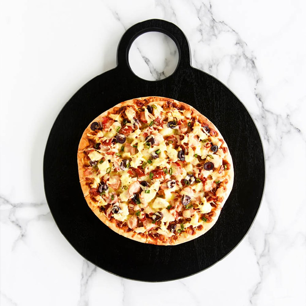 Serve Round Board With Loop Handle Black 405mm Chef Inox