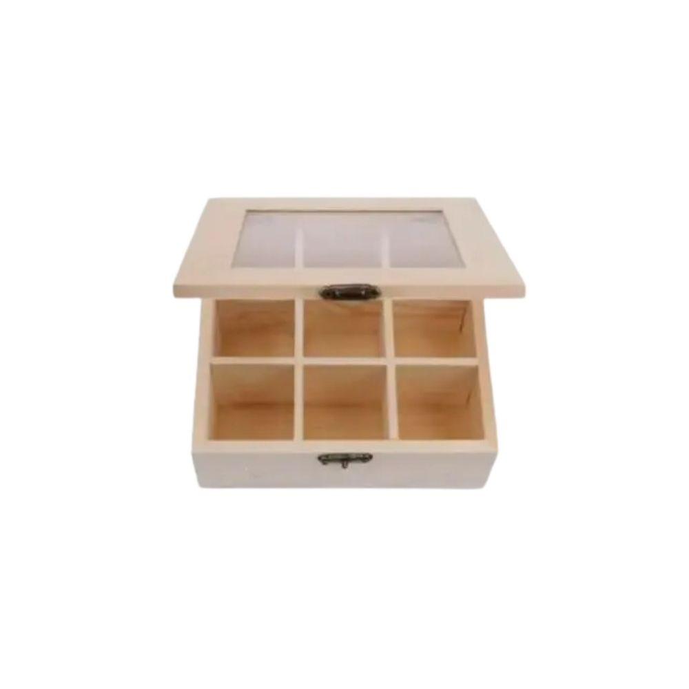 9 Compartment Wood Tea Chest With Window Lid Natural Topstyle