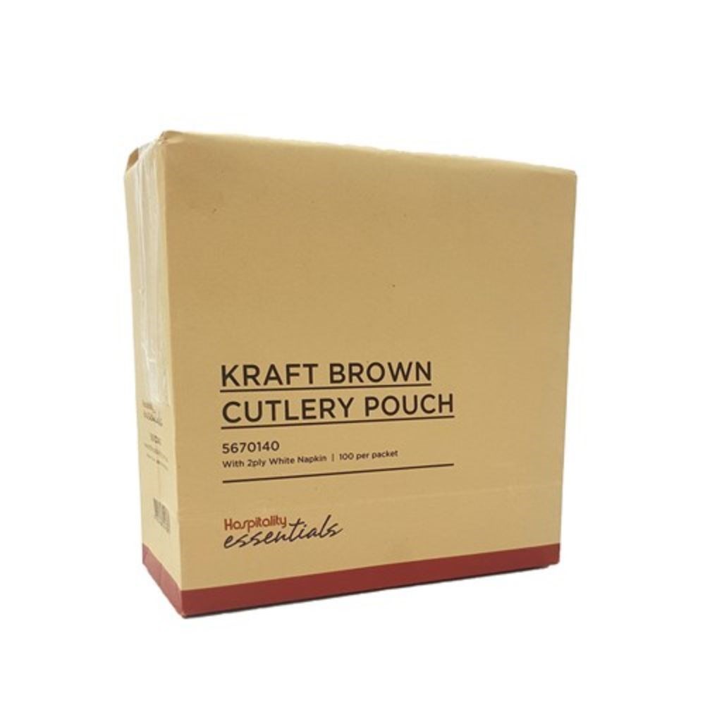 Cutlery Pouch Kraft with 2 Ply White Napkin Essentials Collection
