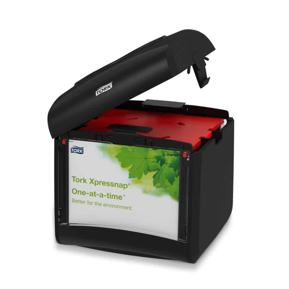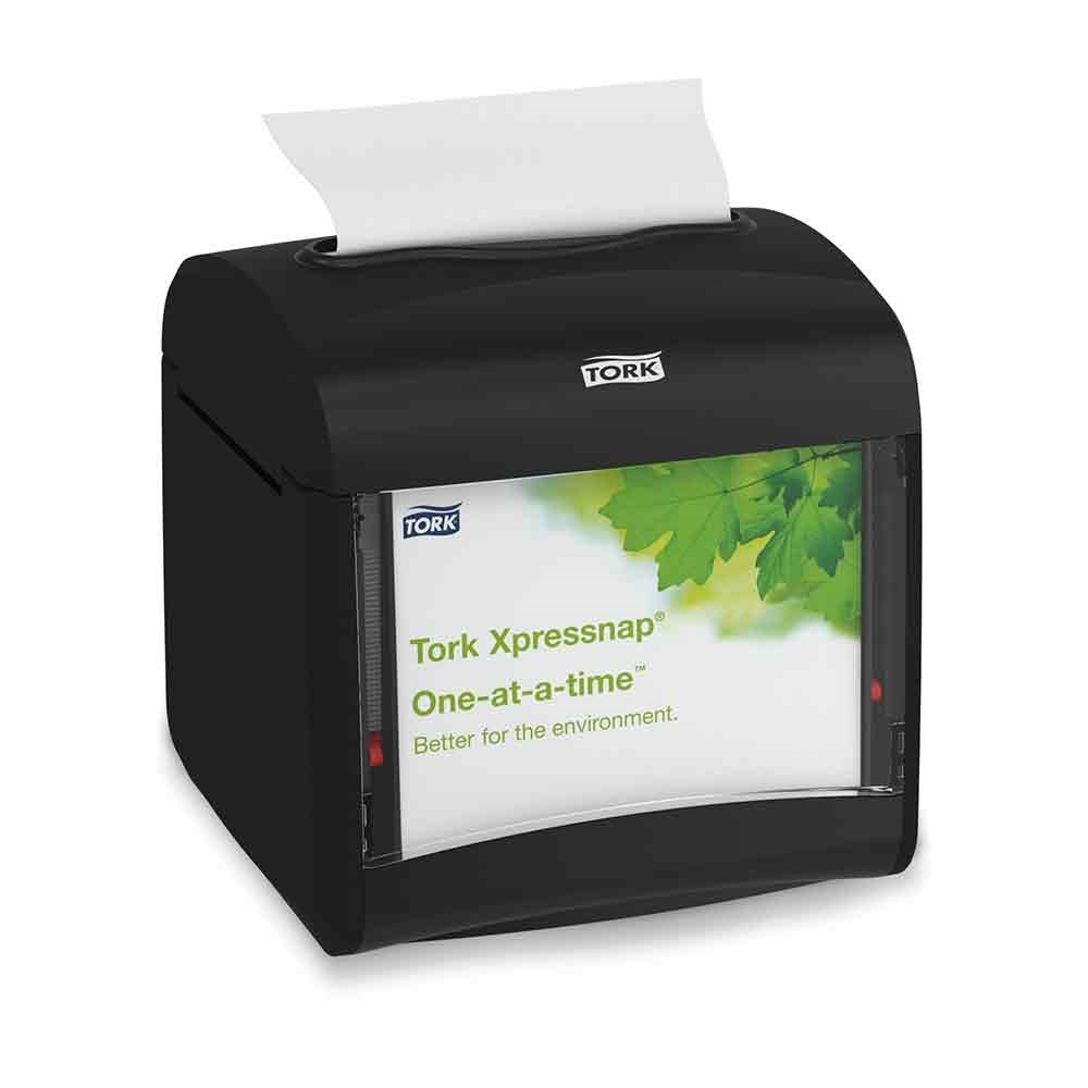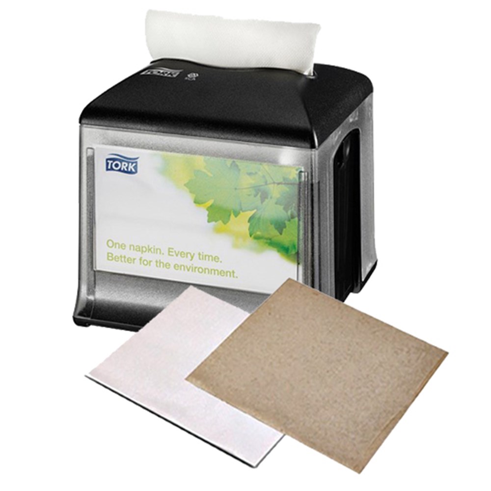 • Tork tabletop Xpressnap Cafe dispenser offers a compact one-at-a-time napkin dispensing, reducing napkin consumption by 25%