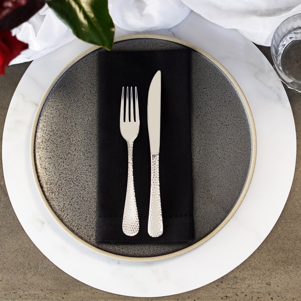 The Oscar table knife has a beautifully shaped handle that feels comfortable in the hand. The knife is made from stainless steel, mirror polished for an attractive finish, and also dishwasher safe.