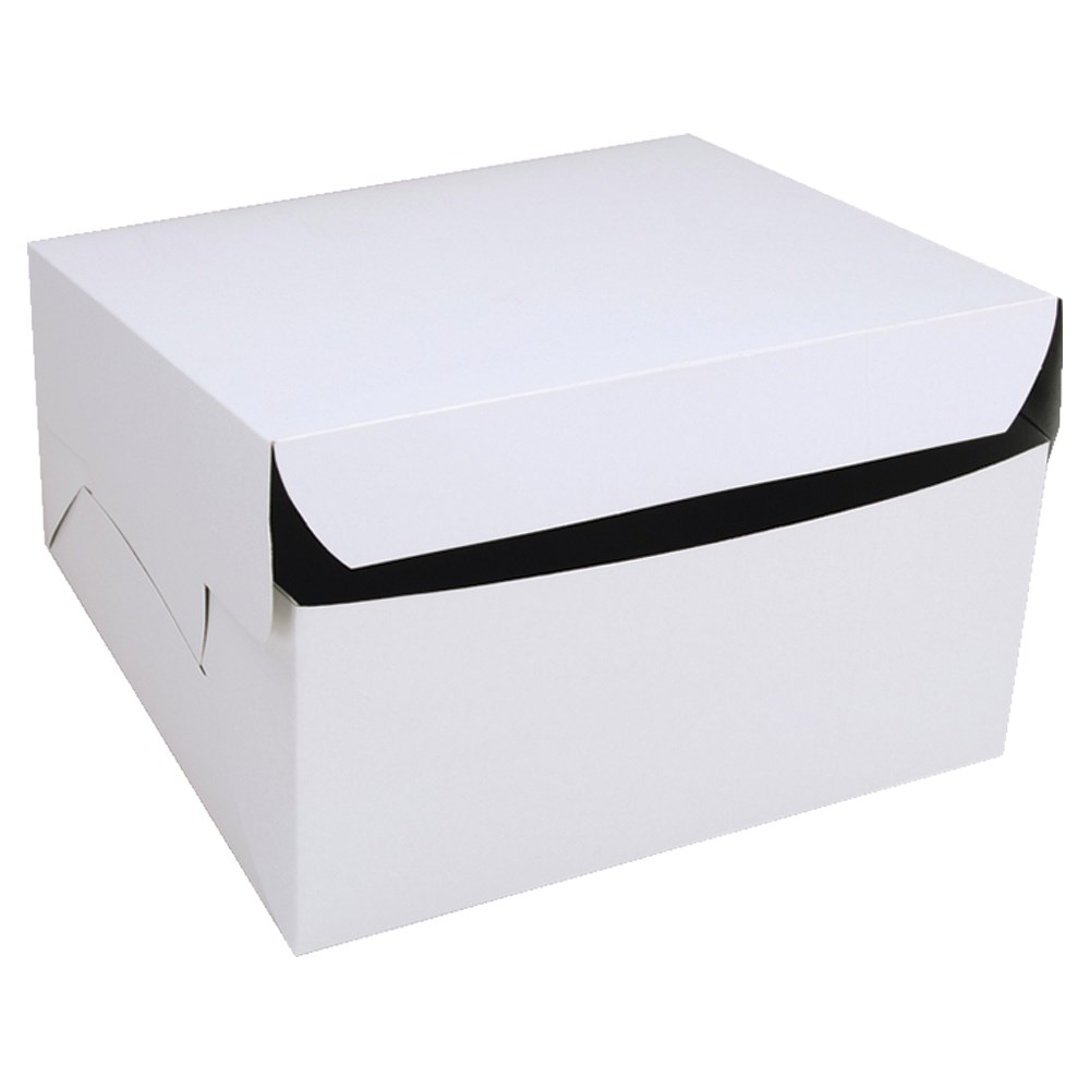 Entice your customers into taking home your delicious cakes, cookies, or muffins with this H63 x L203 x W203mm White Cake Box. The one-piece design lid to be opened easily and then tucked back into place to secure the contents.