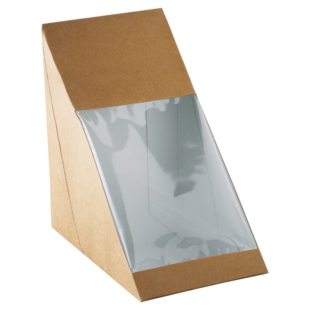 I am eco Sandwich Wedges are an all-in-one solution. They are easy to load from the base and featue a window for displaying of ingredience. They have a bio lining and PLA window