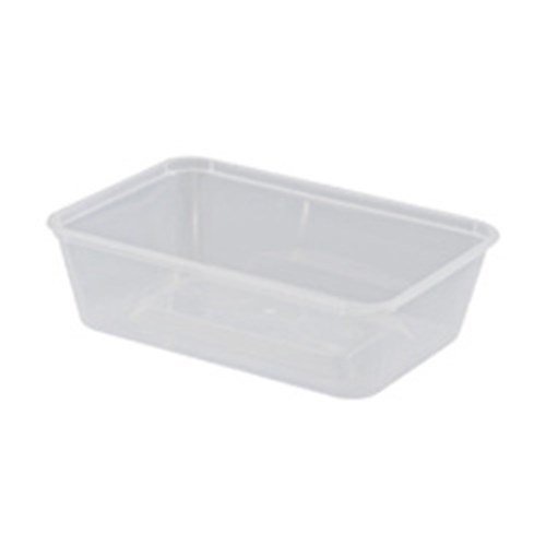Made from BPA-free plastic, the Plastic Rectangle Container Clear 650ml by Essentials Collection is microwave and dishwasher safe for everyday convenience. Supplied in packs of 50, it's a cost-effective solution that fits lid 3428925 for a secure and reliable seal.