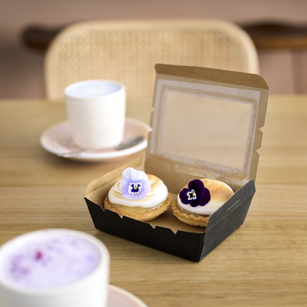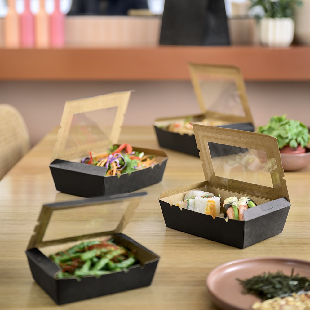 The viewing window on these black takeaway food boxes showcases the food beautifully making these perfect for sandwiches and salads to wraps and sushi rolls. It's suitable for packaging a large array of food from chilled to hot contents and also greasy contents as the internal lining of the lunchbox has a greaseproof resistance factor.