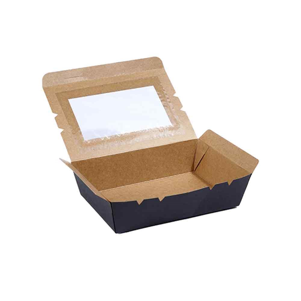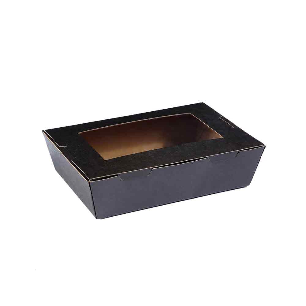 These Window Lunch Boxes are available in four sizes and are made of sturdy cardboard construction to ensure food is secure during transportation. The black finish makes a statement with a matte finish that exudes sophistication and professionalism.