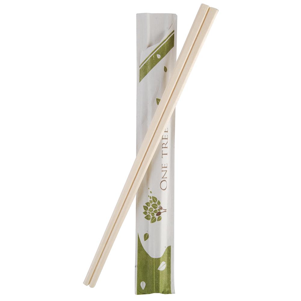 Wooden Chopsticks Brown 200mm One Tree is crafted from FSC-certified plantation birch, ensuring sustainability and durability. The included FSC-certified paper sleeve provides a hygienic and eco-conscious option for businesses.