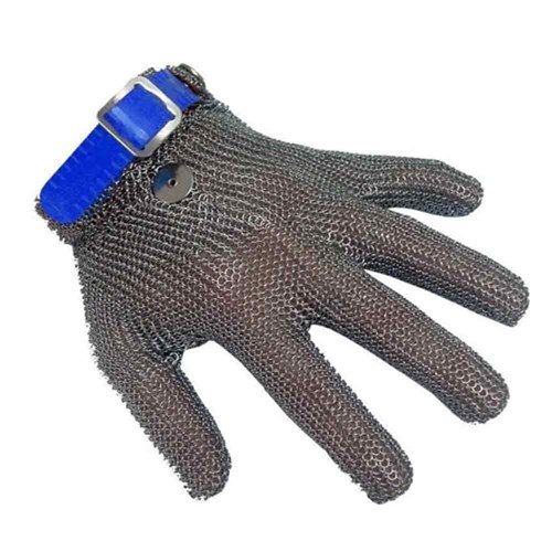 Glove Chain Mesh 5 Finger Plastic Strap Blue Large Niroflex