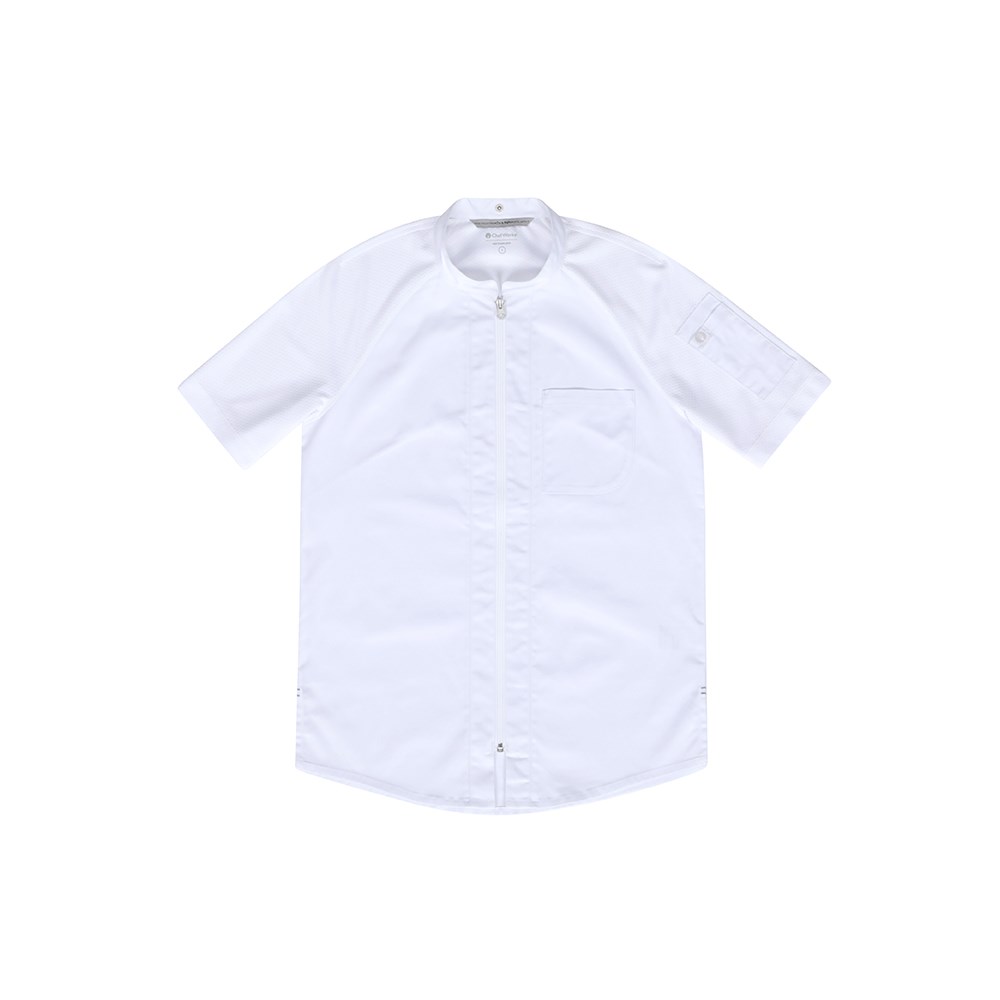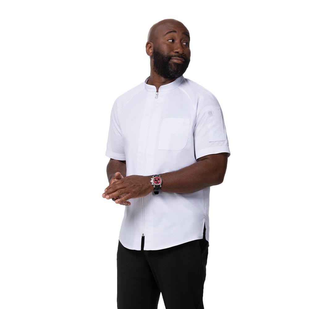 The Arcadia Chef Coat in White for Men offers a fresh take on the classic chef coat by incorporating a flexible design that promotes comfort, artistic expression, and ambition. This chef coat is also eco-friendly, made from recycled, stretchy Cool Vent™ mesh material that enables you to move with ease. Experience a contemporary fit and clean aesthetic that gives you the power to shape your own future.