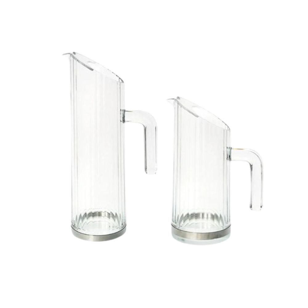 This food-grade safe pitcher is dishwasher safe up to 75°C and 100% recyclable, making it a practical and sustainable choice. Its sleek, modern design is perfect for serving water, juice, or other beverages. Available in 1 litre and 1.5 litre capacities.