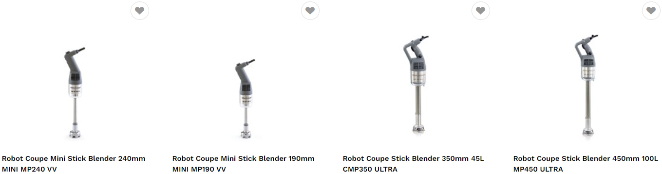 Stick blenders offer the convenience of being able to blend and puree without transferring the ingredients from their cooking vessel or storage container. This group of mobile blenders are available in various models able to process small batches through to 400L capacities in higher wattage models.
