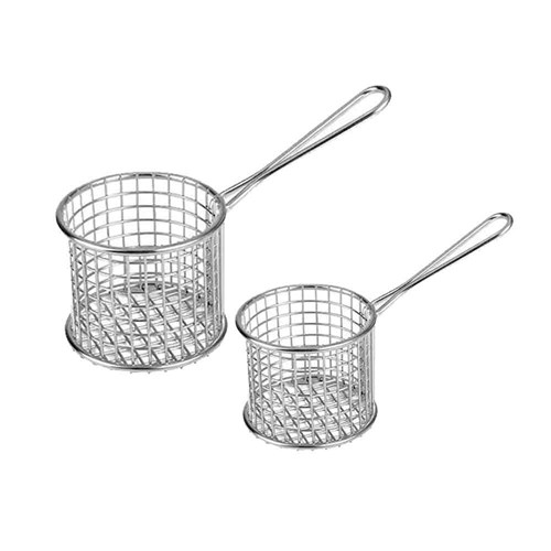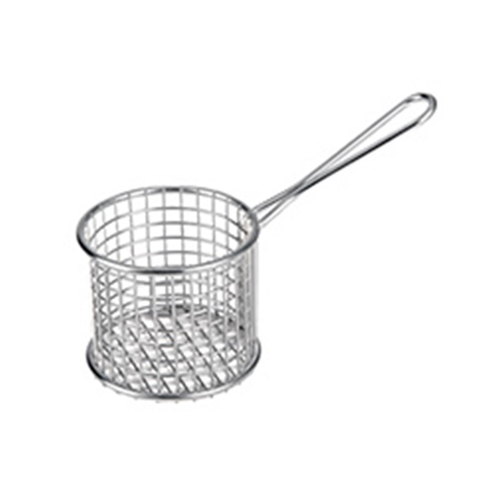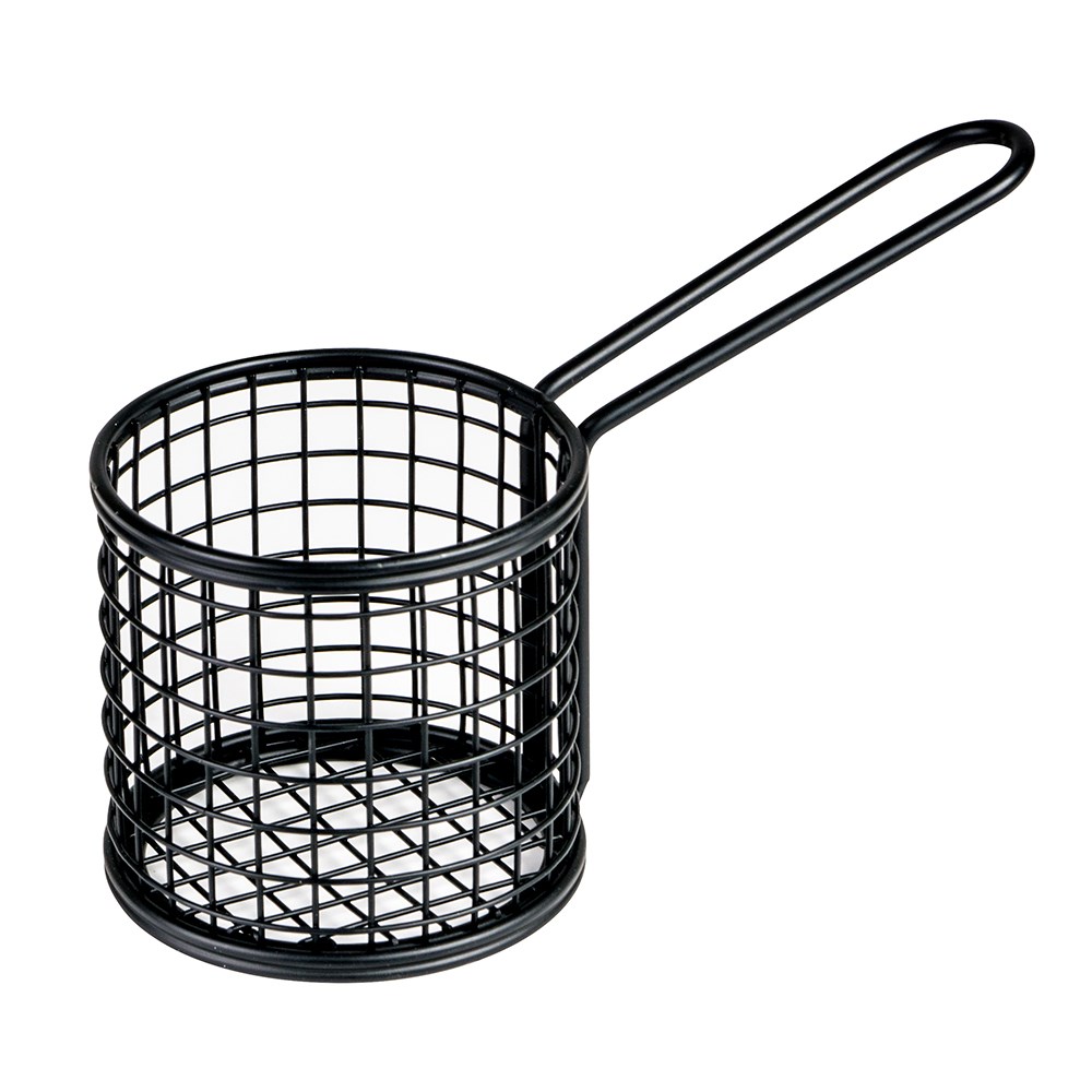 Lift your menu with our contemporary on-trend black Round Serving Baskets. Their extra-long handle allows for an easy-grip making it extremely easy to serve and use. Mimicking the style of a deep frying basket, these baskets are a popular favourite in a number of restaurant, cafes and hotels around the country and are a great place to side chips, wedges, nuggets and more! Add our greaseproof paper to complement your dish and bring it to life.