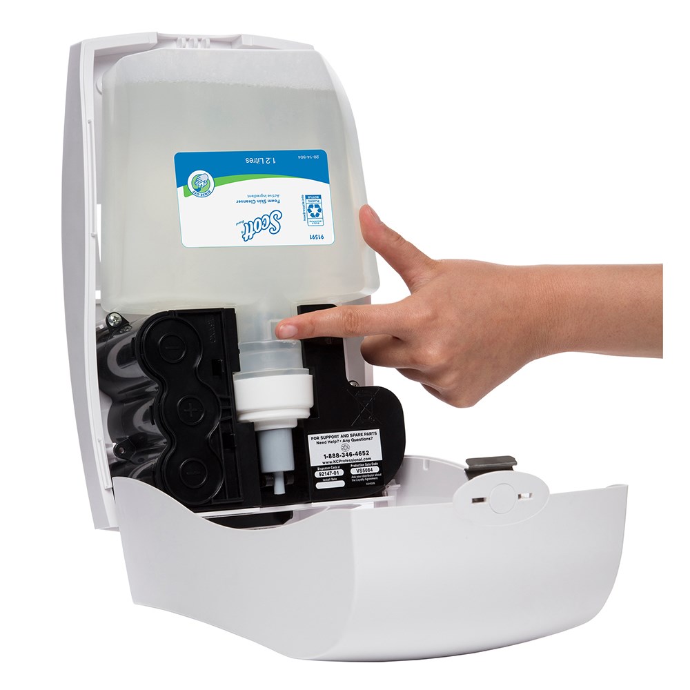 One case contains one SCOTT® touch-free soap dispenser, an electronic soap dispenser suitable for selected KIMBERLY-CLARK PROFESSIONAL® hand wash and soap products Help reduce cross-contamination and the spread of germs with this automatic soap dispenser; users don’t have to touch the unit during use Certified by HACCP International Automatically dispenses one application of hand soap or hand sanitiser when a user places their hand beneath the dispenser Use this touch-free soap dispenser with selected KIMBERLY-CLARK PROFESSIONAL® 1.2 litre cartridge hand soap or hand sanitisers