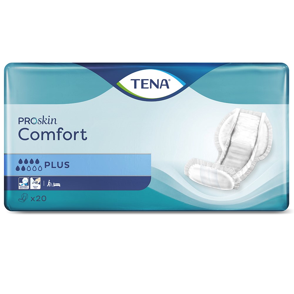 TENA Comfort Plus offers an extra high level of leakage protection and a comfortable fit, so you can wear it with confidence.The unique bowl-shape provides leakage security and close body fit. The product quickly draws the liquid away from the surface, keeping the skin dry.