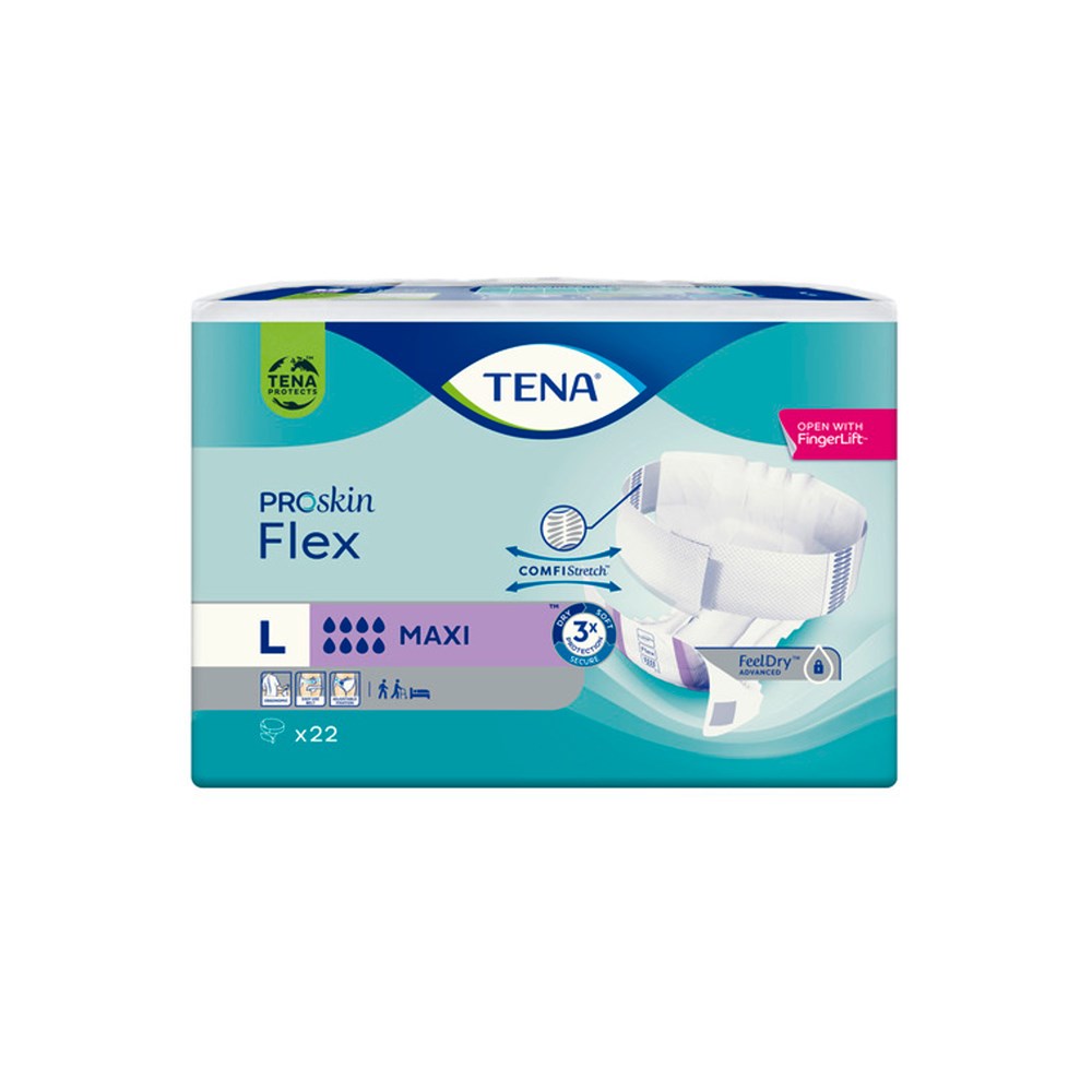 For outstanding protection, TENA Flex MAXI with FeelDry Advanced quickly draws the liquid away from the surface, keeping the skin dry. Designed to allow easy and more ergonomic product changes, suitable for people who are mobile, semi-mobile or immobile.