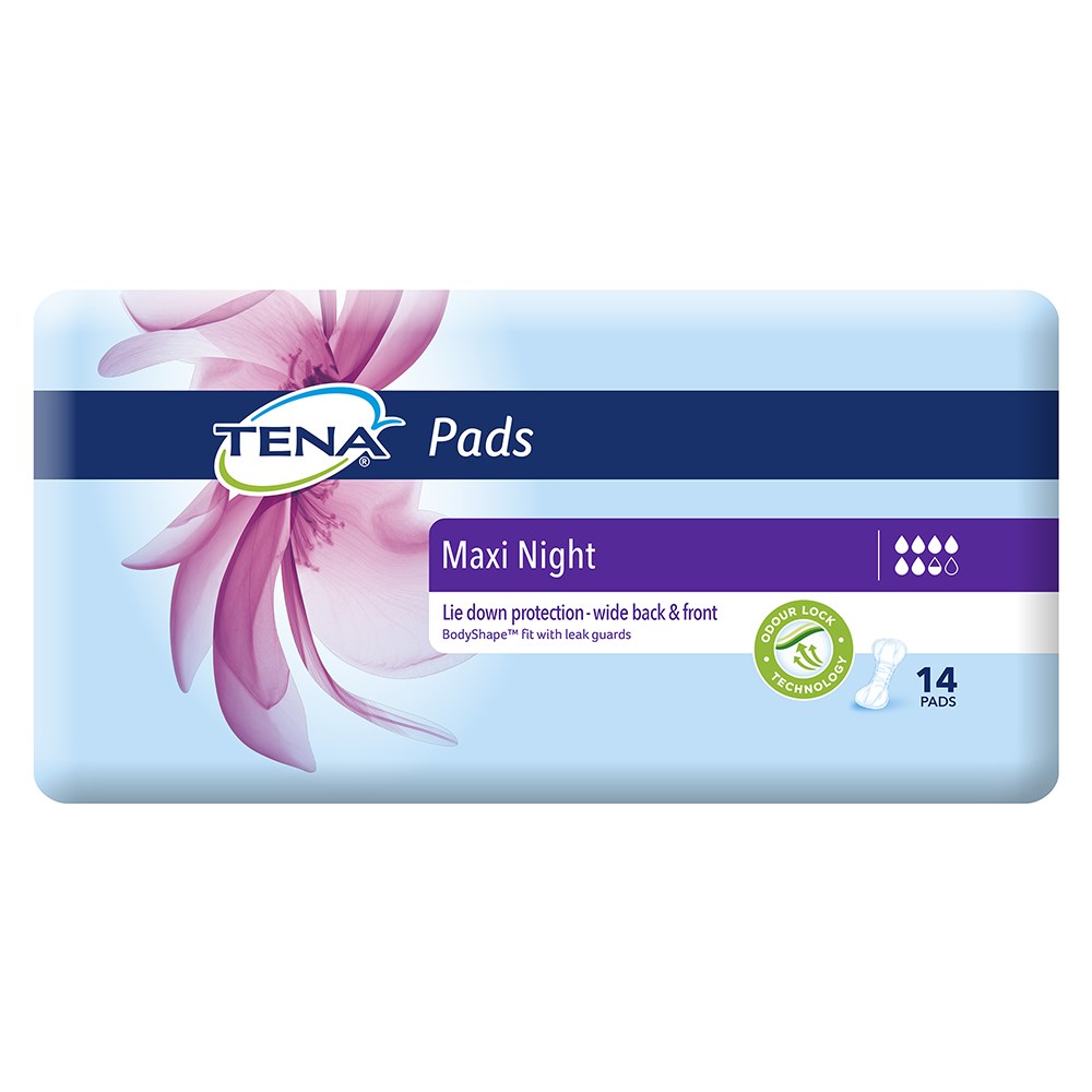 TENA Maxi Night Pads are the most absorbent in this range. The product is extra long with a wider front and back providing extra security and coverate to manage leaking during the night, or additional coverate on days when additional absorbency is required such as long car, bus or plane trips. This product is designed with QuickDRY technology that locks away the moisture ensuring it doesn't leak out while the user is lying down. Comfort is also achieved with soft side elastics that countour to the body for greater security and comfort. Tena's most absorbent pad is suitable for both day and night. Designed with extra length, anatomical shape, a Quick Dry layer to draw the liquid into the pad and away from the skin, and anti-leak guards for superior lie-down protection.