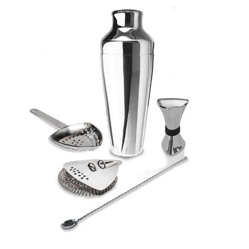 The ProShaker™ Kit is ideal for measured Cocktail Making and is used worldwide by Professional Bartenders for efficient Bartending. 5 piece set in Chrome Contains 1x ProMegJig™, 1x BarRay™, 1x ProTeardrop™, 1x Juliep™ & 1x MShaker