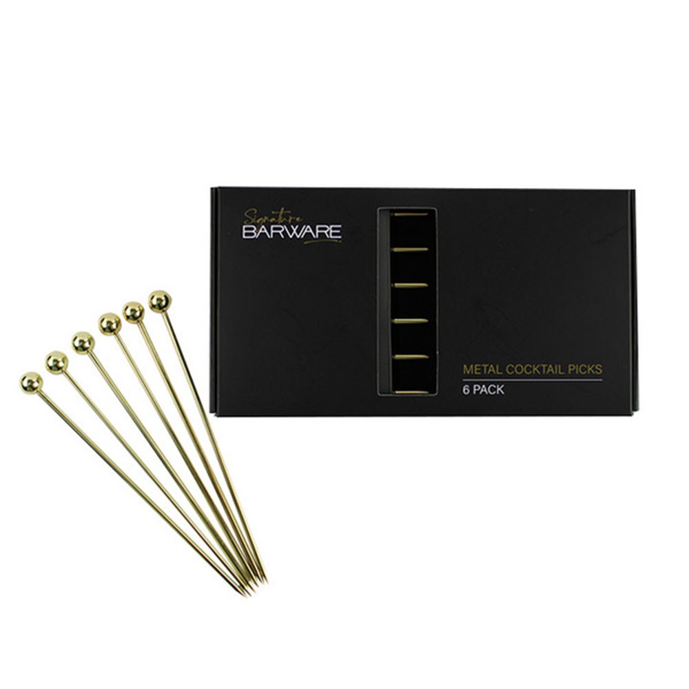 Enhance your cocktail experience with these gold Reusable Stainless Steel Metal Picks. Perfect for both appetisers and cocktails, these picks come in a pack of 6.