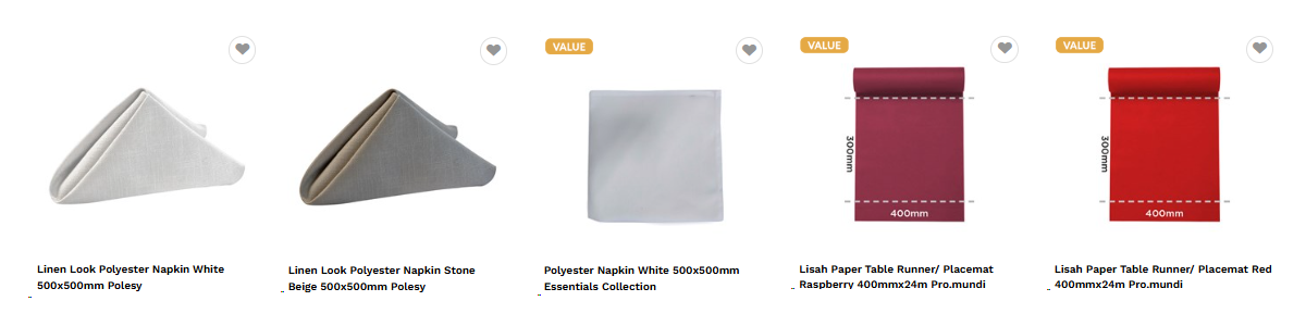 Set the foundation of your table with crisp white polyester tablecloths by Polesy then commence layering the décor with a stunning red or raspberry Pro.Mundi table runner with matching napkins.