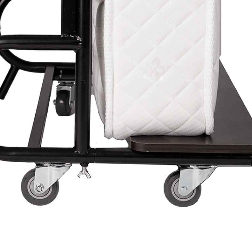 Give your guests the comfort and luxury they deserve with our Luxe 5 Star roll away bed. Complete with a premium quilted spring coil mattress that is 20cm thick, your guests are sure to have a great night's sleep. The modern dark wood grain headboard is complemented by a sturdy powder-coated metal frame, making this bed tough and trendy. The movable bed is stabilised on 7 cm wheels that are suitable for use on wooden floors.