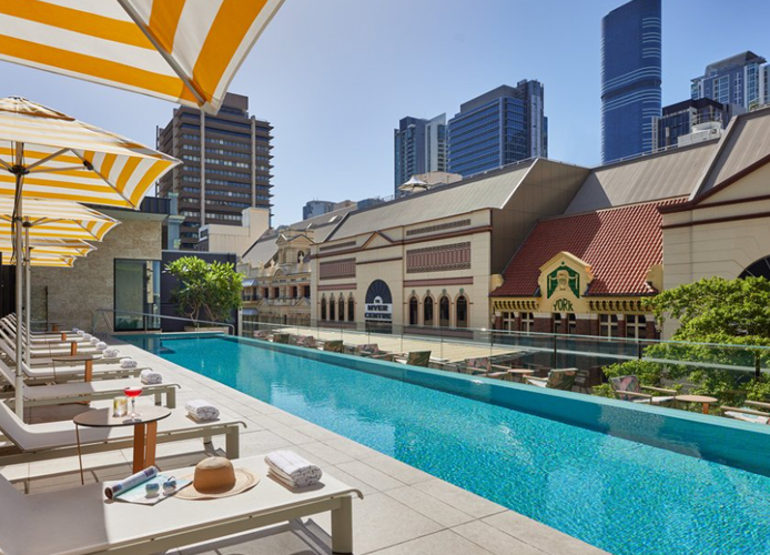 The Hibiscus Bar and Terrace is located on the fourth floor of the Hyatt Regency in Brisbane City. The poolside venue is a popular meeting spot with views of the Brisbane skyline overlooking Queen Street Mall. The Hyatt Regency renovated the Hibiscus Bar & Terrace with a grand opening in 2021 to showcase their new and improved venue.
