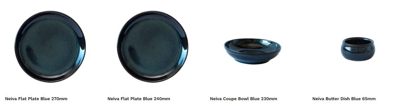 The Neiva crockery is also available in blue, red, and sand which have been expertly selected to accompany the navy pieces in mix-and-match combinations to showcase your food and add colour contrasts to your setting.