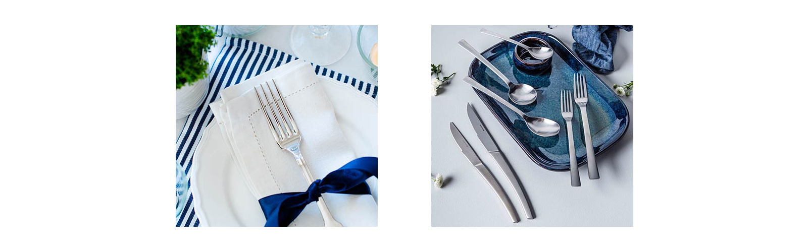 This cutlery is bold with its sleek curves and modern lines. They are an ideal selection for a naval-themed setting of navy and blue as these exquisite dining utensils introduce sophistication and elegance to the bold colour choice.