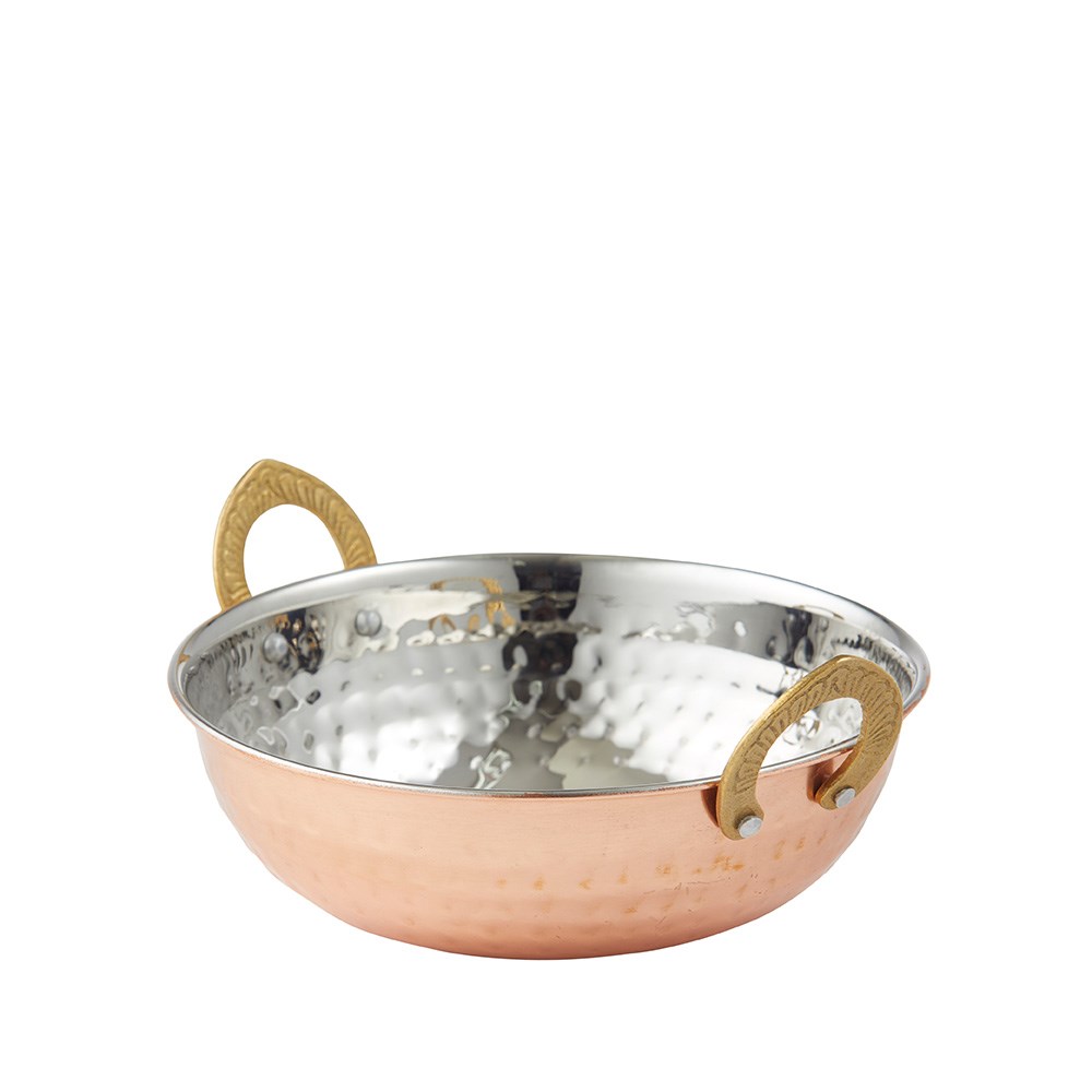 Balti Dish S/Steel Copper W/ Brass Hdls 110X140x70mm (6/72)