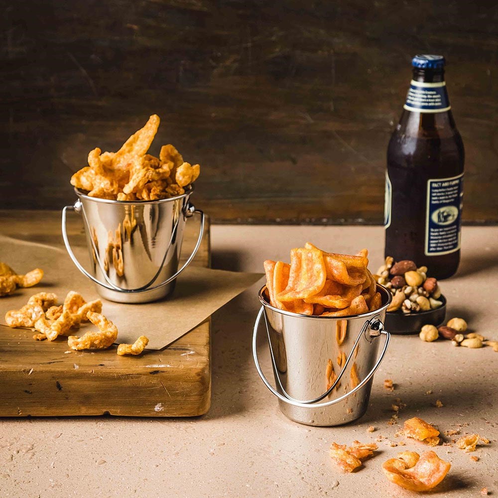 Use the stainless steel 85mm Mini Serving Pail with handle to serve your food in a fun and creative way! From seasoned french fries to specialty side orders, the sleek, silver form promotes an eye-catching display. As guests enjoy their meal, staff can rest assured the durable stainless steel construction will hold up to heavy, commercial use. This pail provides a creative alternative to traditional bowls, plates, or platters. It features a rustic handle designed to both make transporting easier and bring old-fashioned charm to your tabletop. Enhance food presentation at your cafe, restaurant, or outdoor eatery with this stainless steel serving pail.