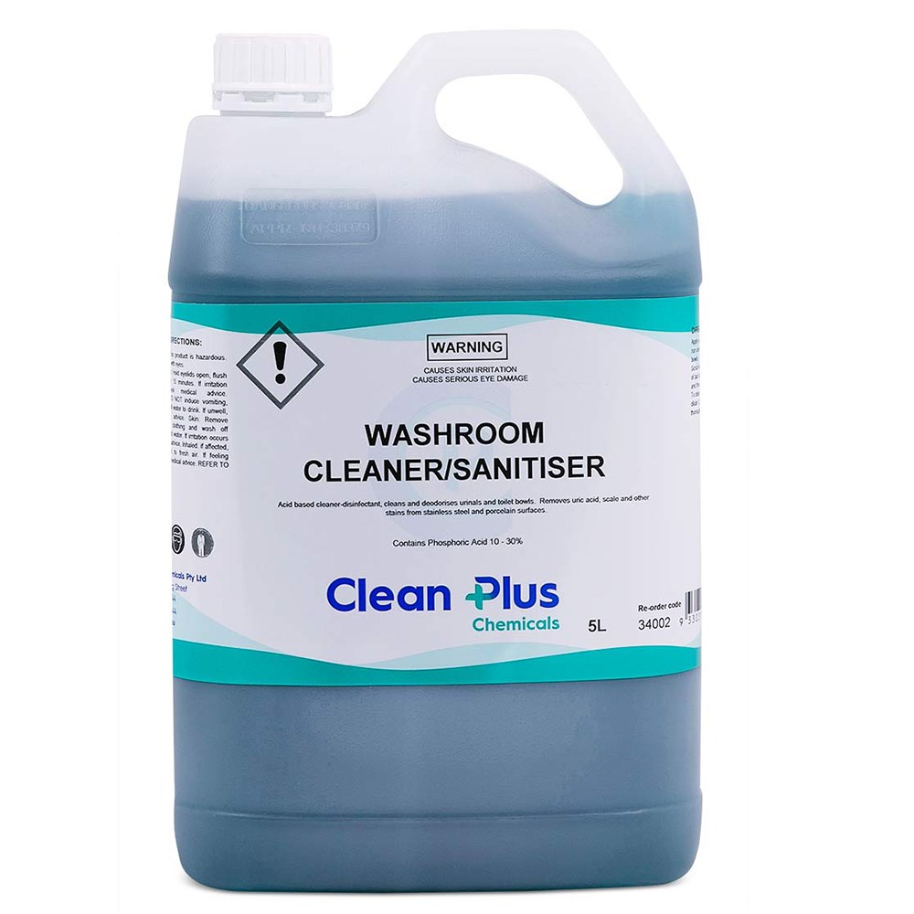 The Washroom Cleaner and Sanitiser by Clean Plus Chemicals cleans and deodorises urinals and toilet bowls. Remove uric acid, scale and other stains from stainless steel and porcelain surfaces with ease thanks to the expert formulation in this product.