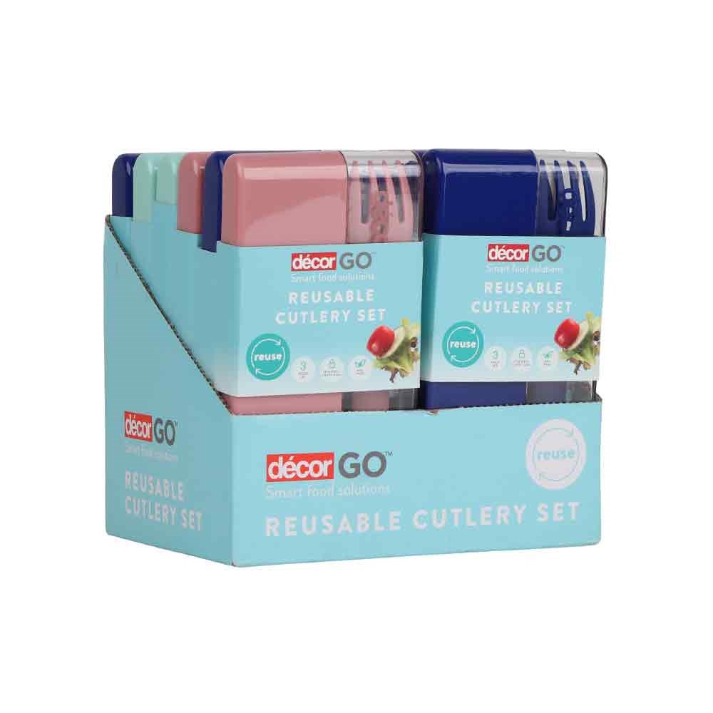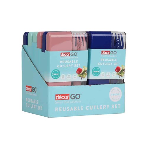 The Decor Reusable Cutlery Set is ideal for lunch on the go! This knife, fork and spoon set comes in a colourful carry case which keeps the three pieces clean and hygienic and means no more digging around the bottom of your bag for loose utensils.