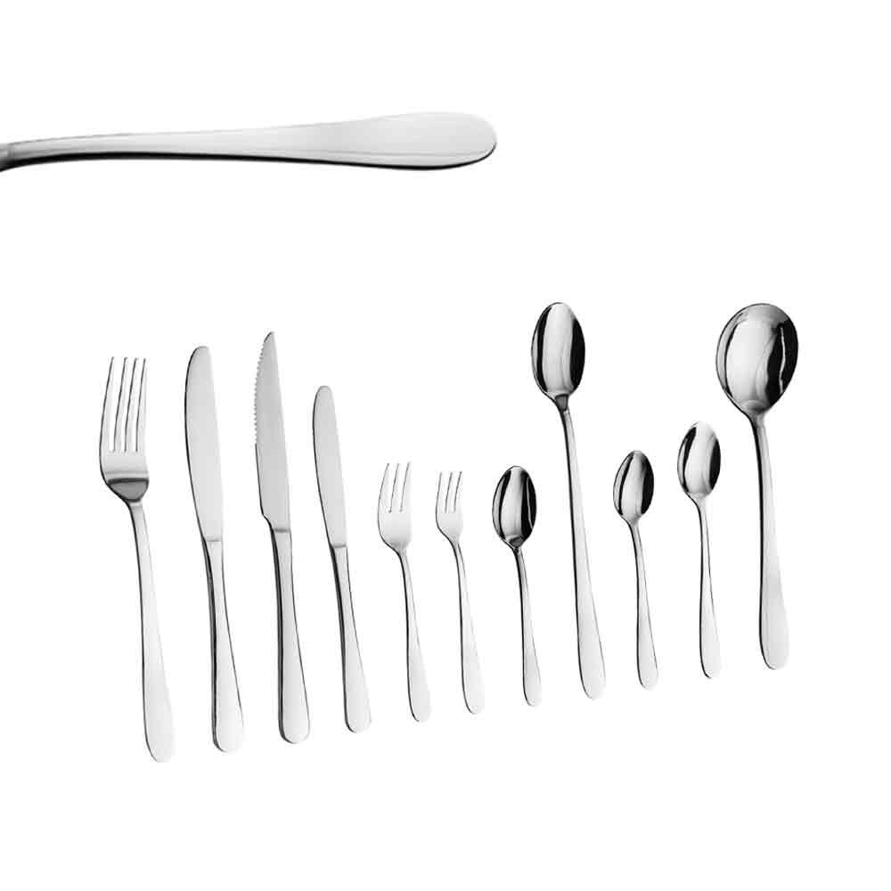 • Available in Table Knives, Table Forks, Dessert Knives, Dessert Forks, Dessert Spoons, Soup Spoons, Teaspoons, Soda Spoons, Coffee Spoons, Cake Forks, Steak Knives, and Oyster Forks