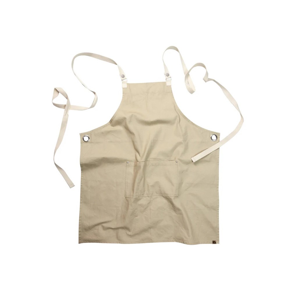 The Byron Bib Apron Cross Back in a natural color blends easy comfort with streamlined, understated design. Its unique cross-back straps, which are made of heavyweight cotton canvas, distribute weight evenly across your shoulders, allowing you to move freely without straining your neck. Long shifts in crowded kitchens are ideal because the breathable material feels light against your skin. This apron is a great option for companies looking for consistent branding because it is made to be a true blank canvas, providing plenty of room for logos, embroidery, or screen printing. This apron promises long-lasting durability and style that changes with your brand. It is also easy to wash and resistant to fading.