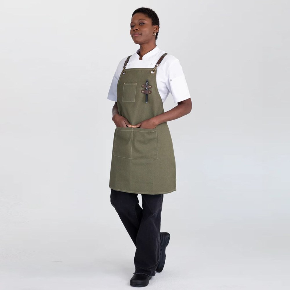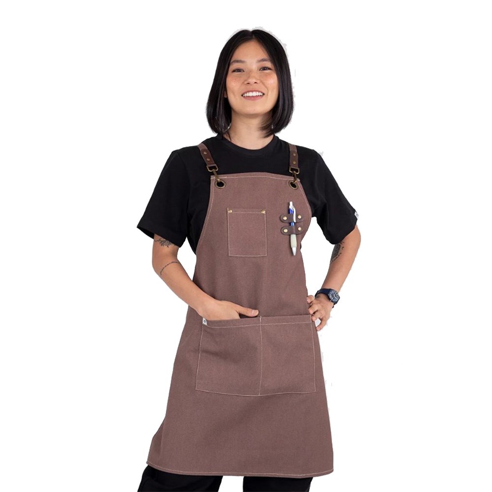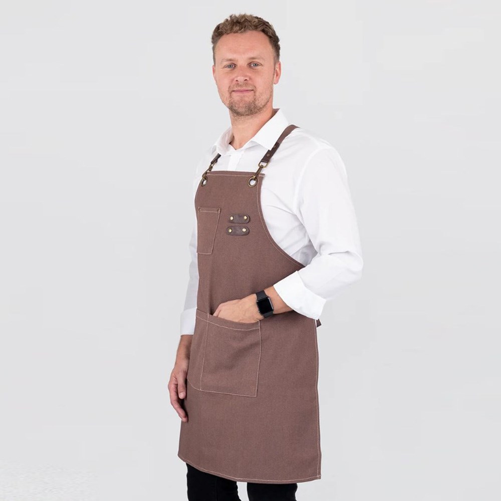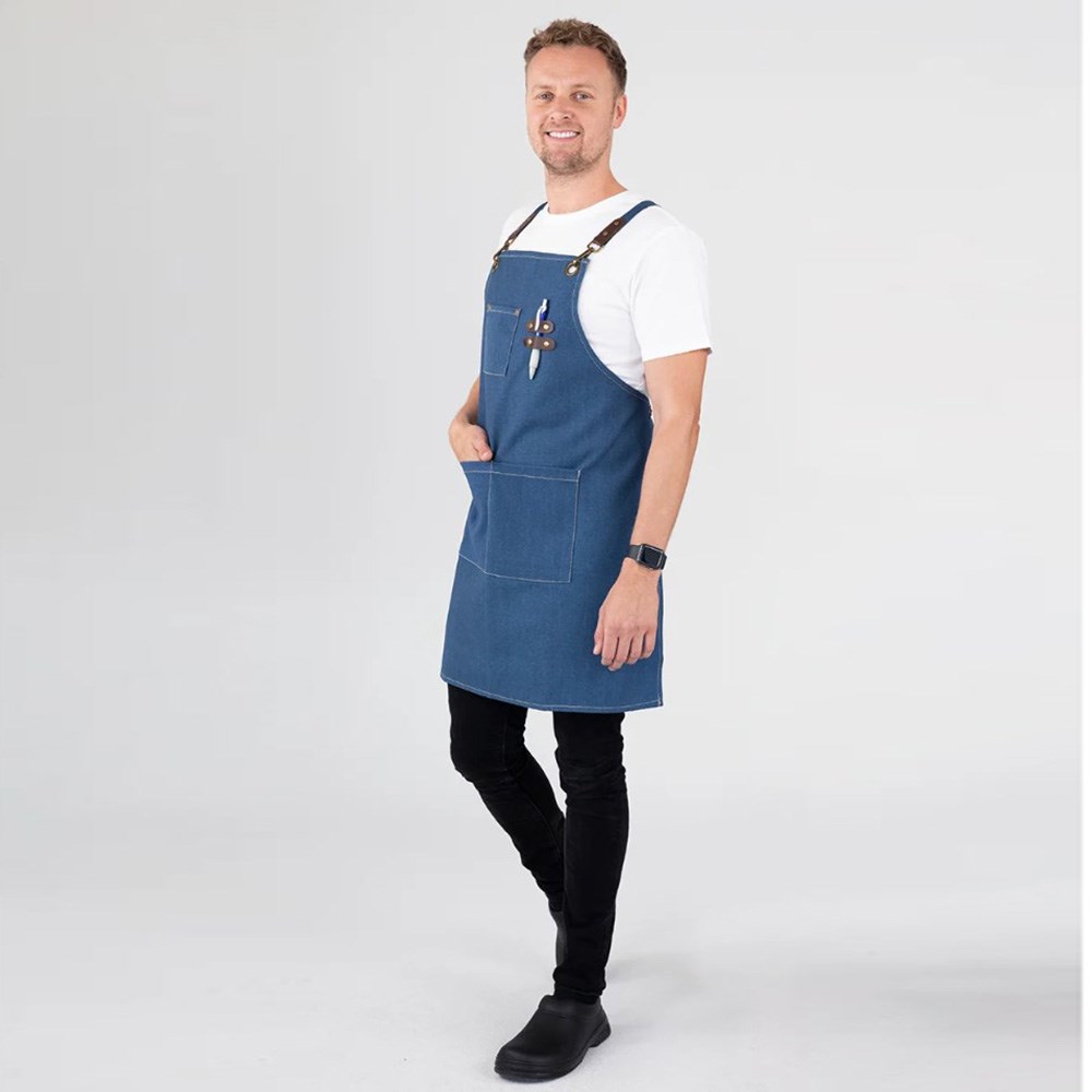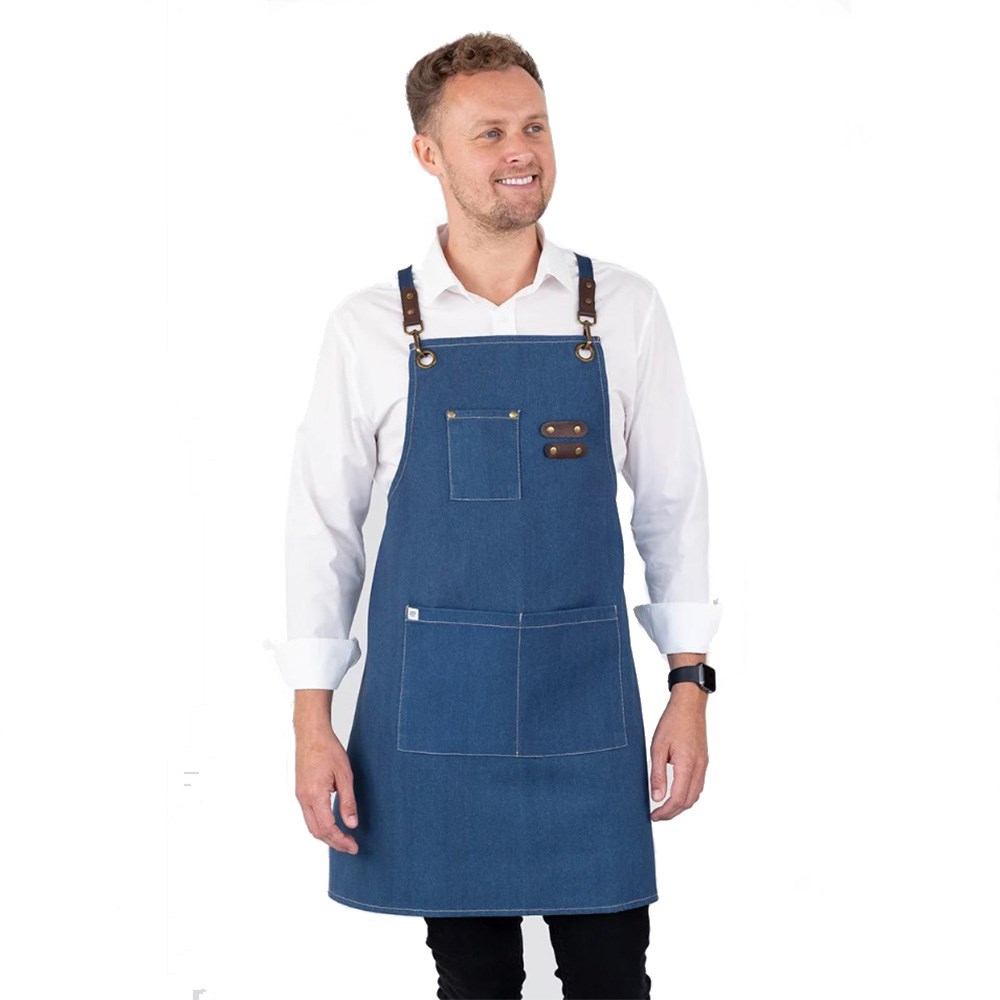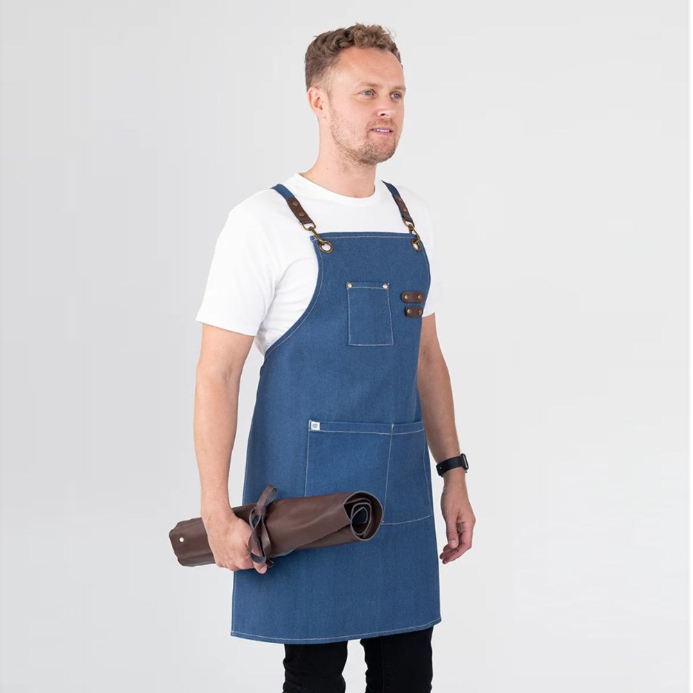 Utility meets style with functionality at the forefront of the Tomy apron's design. They come with practical utility pockets ideal for holding your tools and essentials, as well as a leather-trimmed pen holder for added convenience. The eye-catching bronze-coloured buckles, eyelets, and rivets complement the contrast jeans-style stitching giving this apron a unique and fashionable uniform that stands out in any setting.