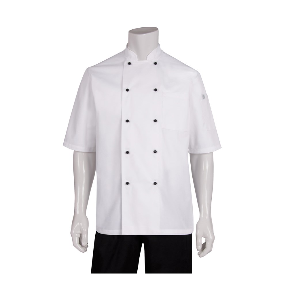 The Macquarie White Short-Sleeved Chef Jacket is the perfect jacket for your eatery. This Jacket is made of a superior poly/cotton blend that is durable, keeping you looking professional all day.