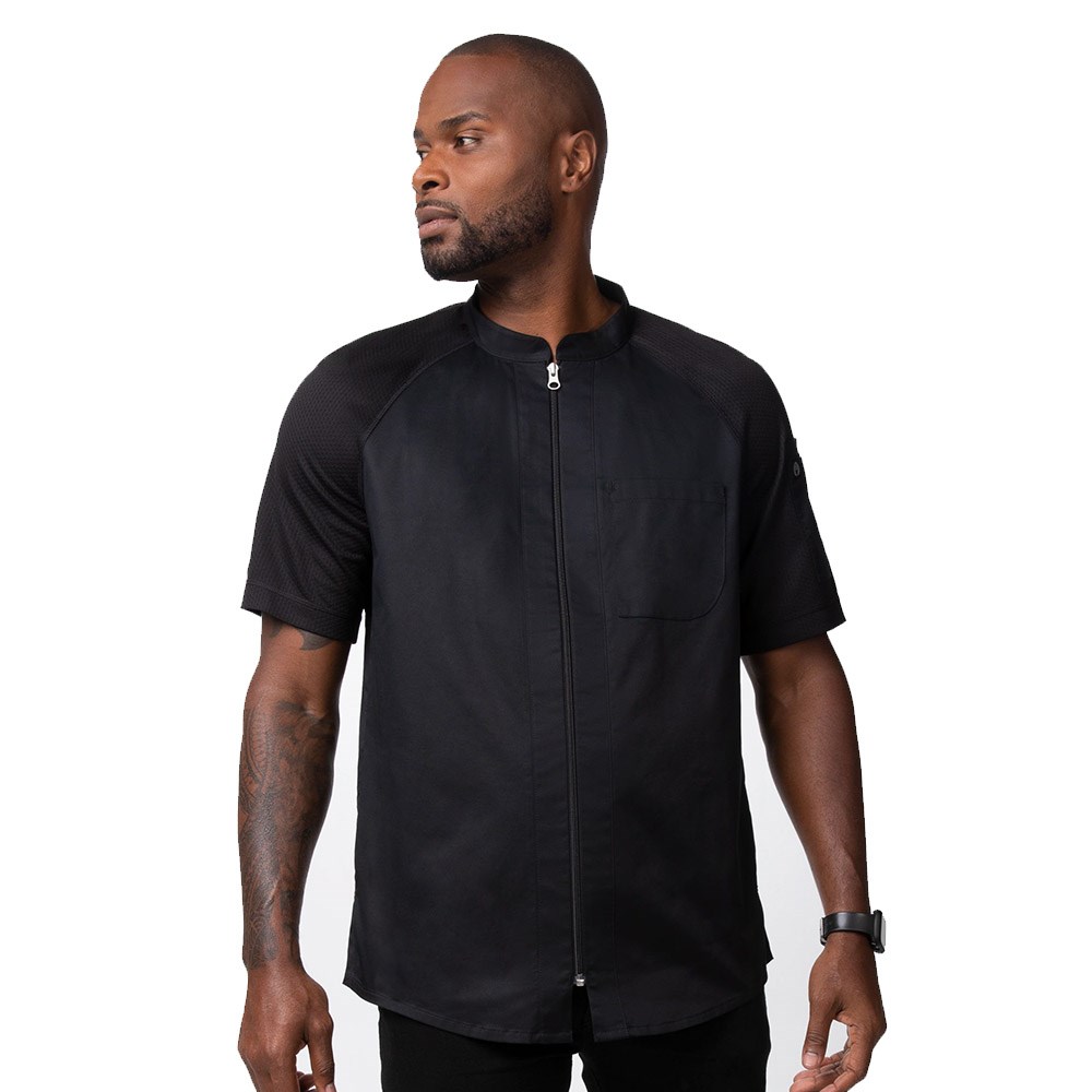 The Arcadia Chef Jackets for Men presents a modern twist on the traditional chef coat, emphasizing comfort, artistic expression, and ambition. This chef coat boasts a flexible design that allows for ease of movement, empowering you to showcase your culinary skills. Additionally, it is crafted from eco-friendly, recycled Cool Vent™ mesh material, ensuring a sustainable choice. With its contemporary fit and clean aesthetic, this chef coat gives you the freedom to shape your own future in the kitchen.