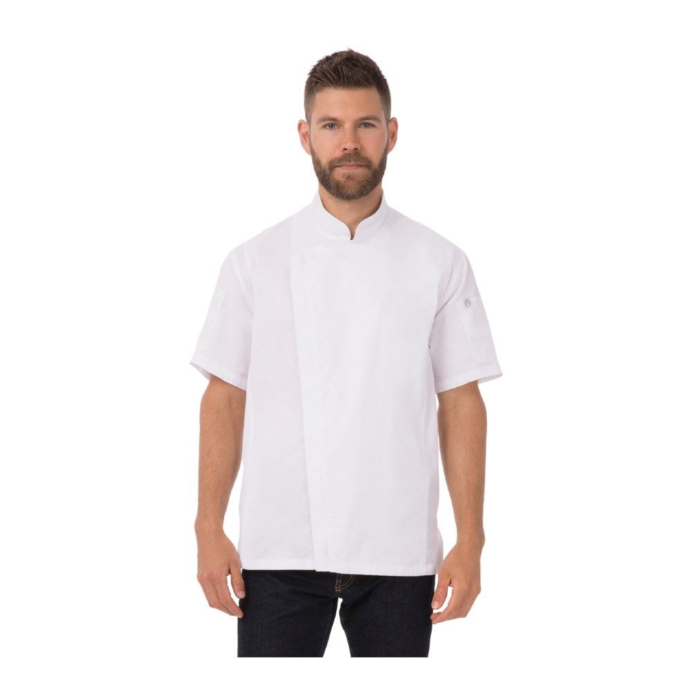 Men's White Extra Small Chef Jacket The short sleeve Springfield Chef Jacket by Chef Works is a classic everyday uniform staple. Made from lightweight material, it will keep you cool in the hottest of cooking environments.