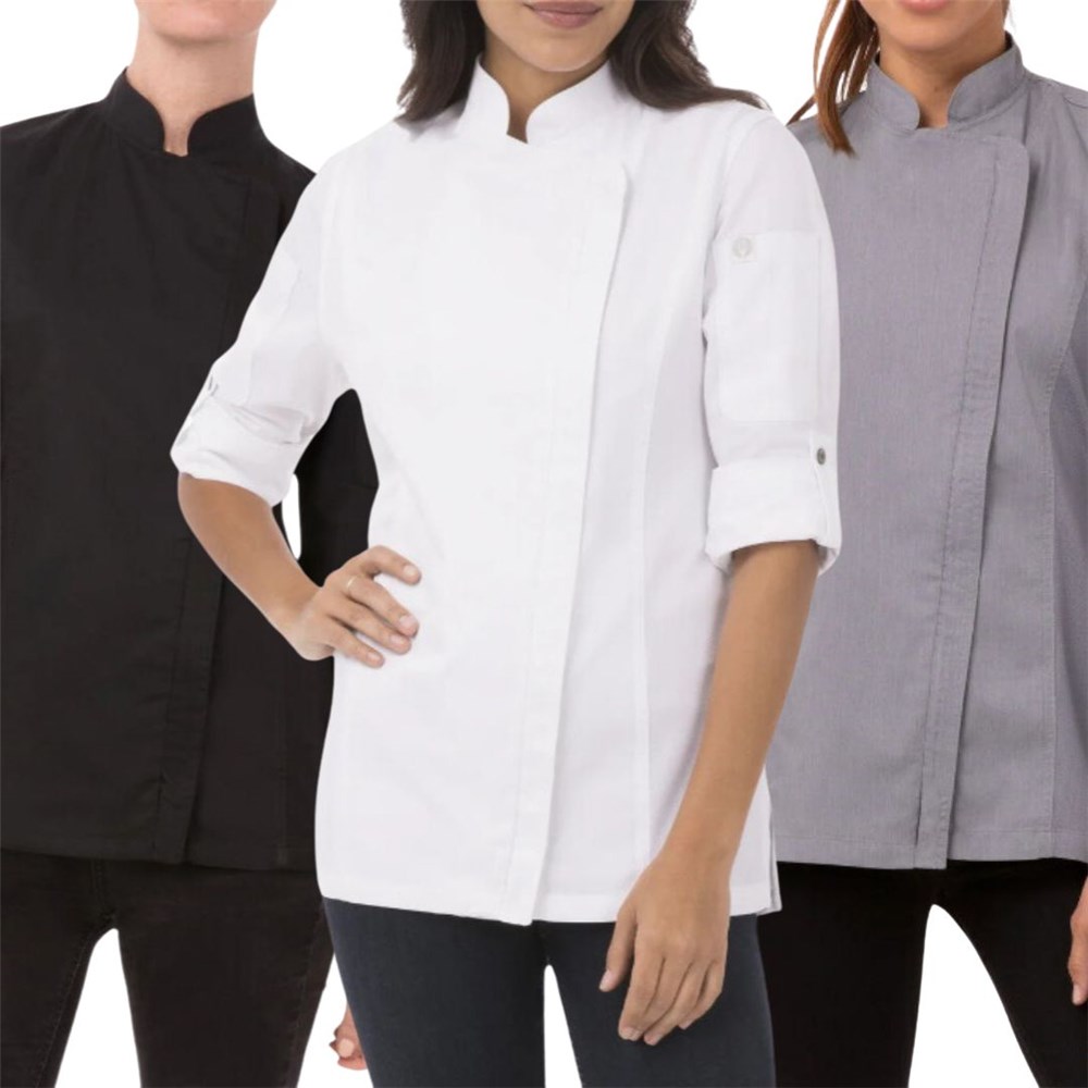 The Hartford Women's Chef Jacket by Chef Works offers a perfect blend of practicality and style for professional chefs. Crafted from a durable 65% polyester and 35% cotton blend, it features Cool Vent side panels and side-seam slits for enhanced breathability during demanding shifts.