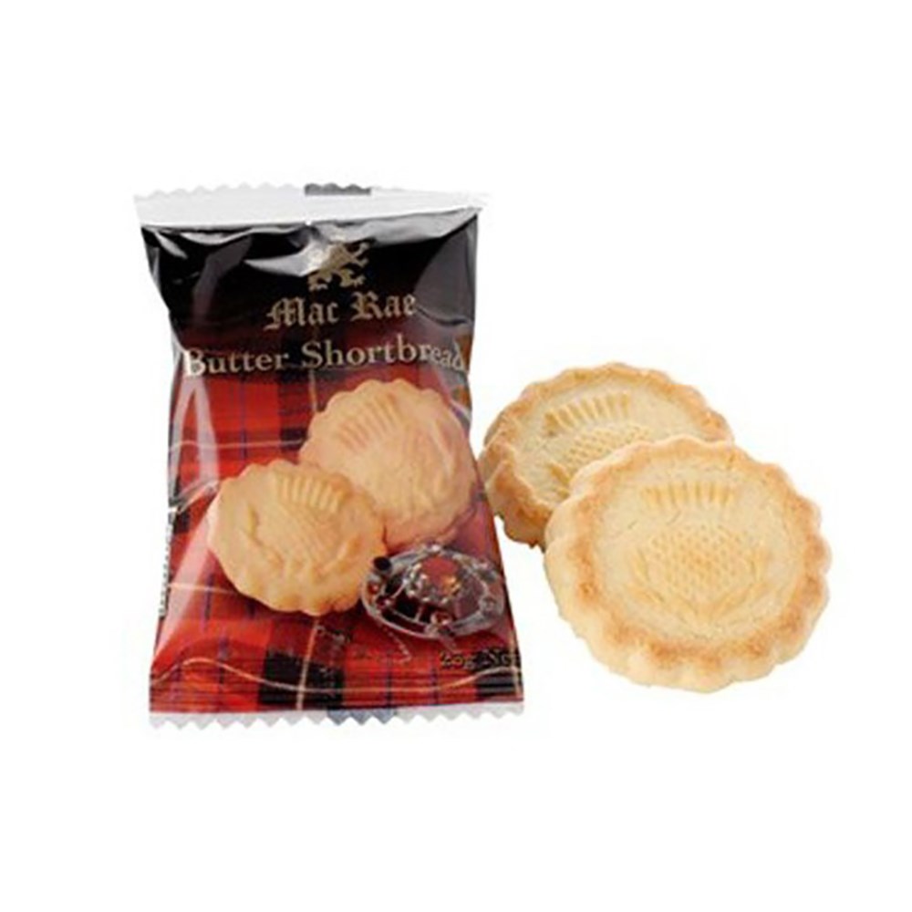 This pack contains two thistle-embossed Butter Shortbread biscuits. This premium product is ideal for Motels, Clubs and Private Hospitals. It also meets the 500kJ requirement for a mid-meal snack. Ideal for: Private Hospitals, Institutions, Motels, Clubs, Airline Catering Egg FREE Seed FREE Nut FREE Easy to Open Warning: Contains Wheat and Dairy Ingredients Wheat Flour, Choice Butter (Cream, Salt), Sugar, Cornflour. Individual Portion Size: 2 x 12gm