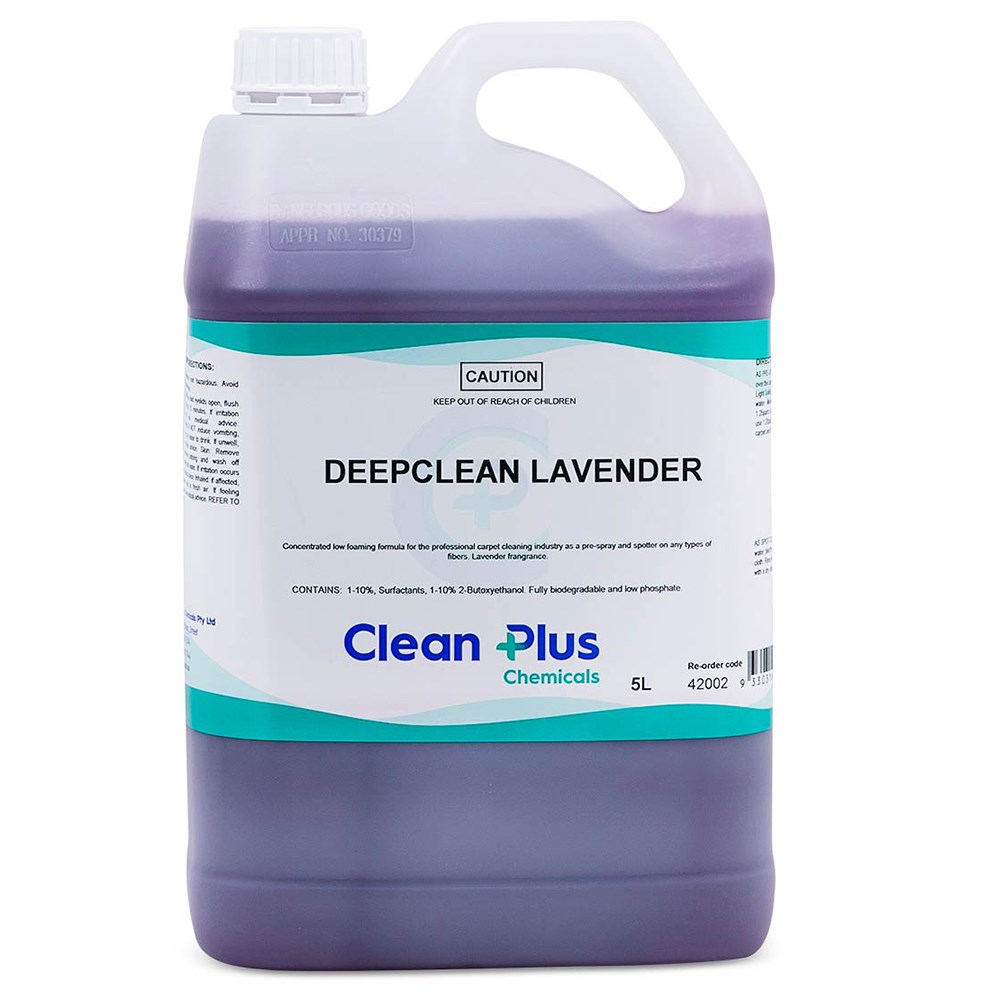 This 5L Deep Clean Carpet Cleaner is a concentrated low foaming formula suitable for the professional carpet cleaning industry as a pre-spray and spotter on all types of fibres. This product features a lavender fragrance.