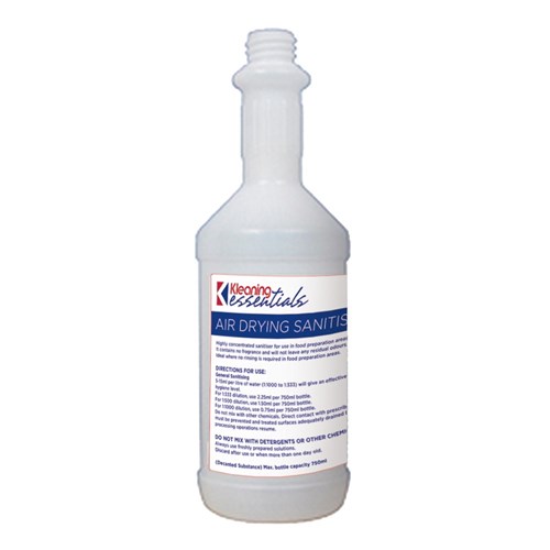 Kleaning Essentials plastic spray bottles are pre-labelled for purpose to suit Kleaning Essentials colour coded chemicals. The 750ml bottles are refillable with bulk-buy chemicals making light weight of day to day cleaning.