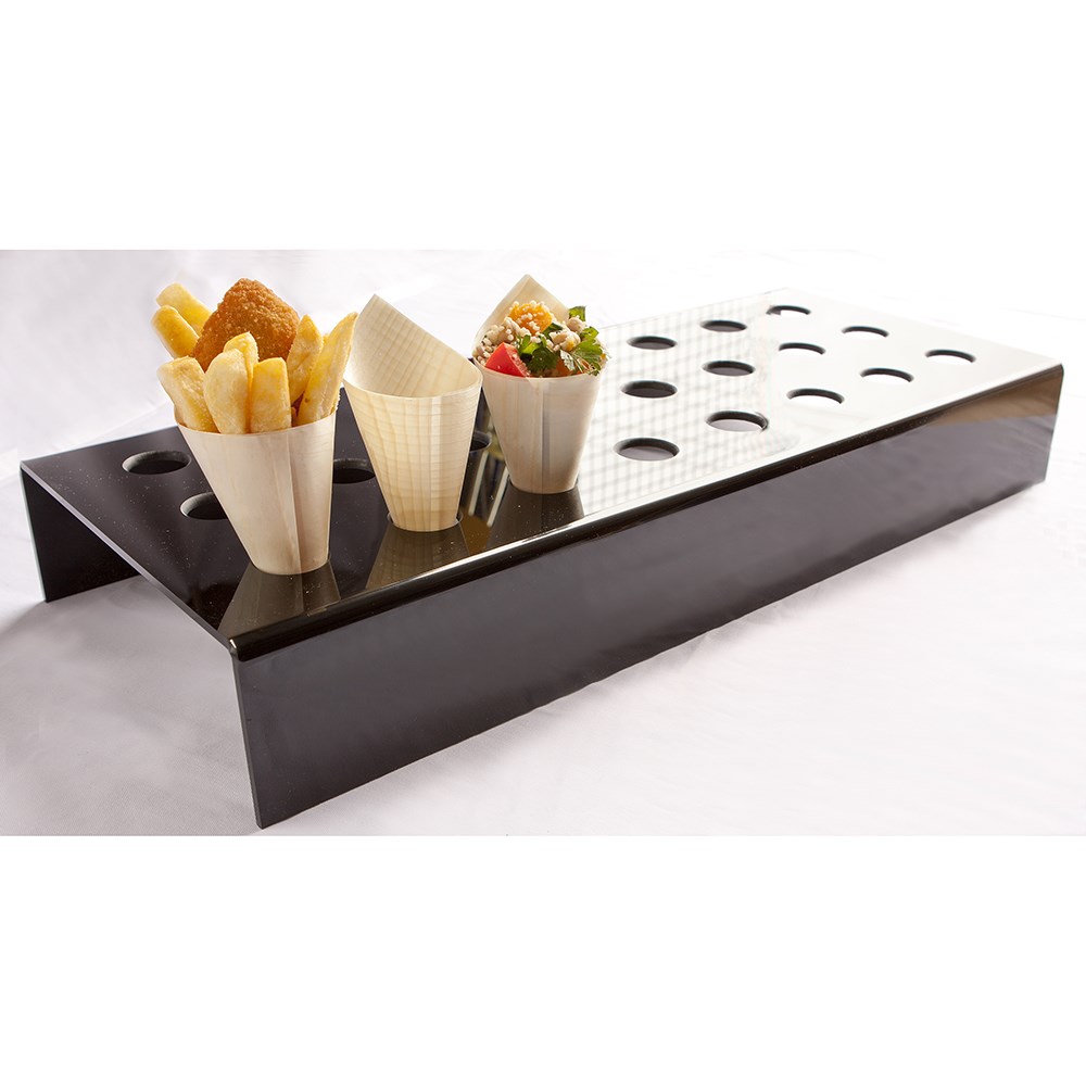 FOOD CONE HOLDER BLK ACRYLIC 24 HOLE 600X260MM