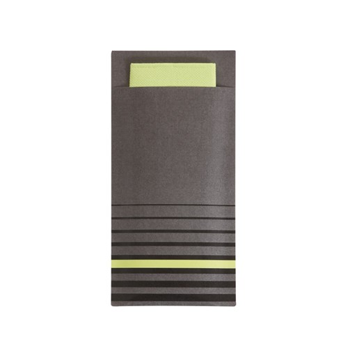 Isi Cutlery Pouch Green Striped W/ 2Ply Napkin 200/Ctn