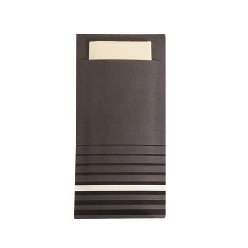 Isi Cutlery Pouch Ivory Stripe W/- 2Ply Napkin 200/Ctn