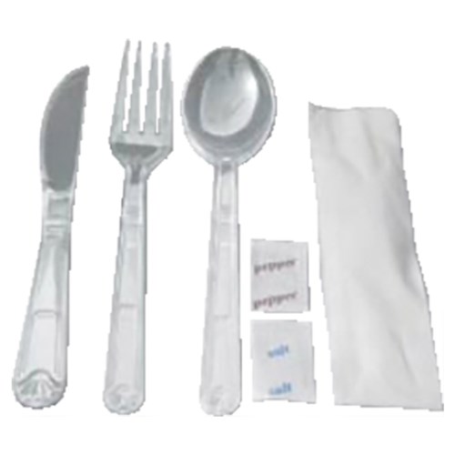 • Includes knife, fork, spoon, salt and pepper and napkin