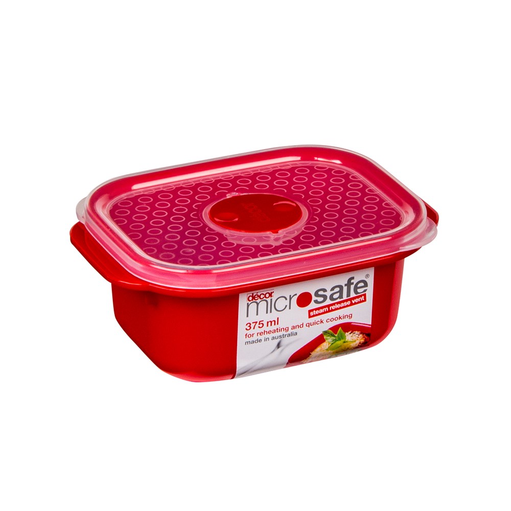 • Colour: Red container with clear lid
