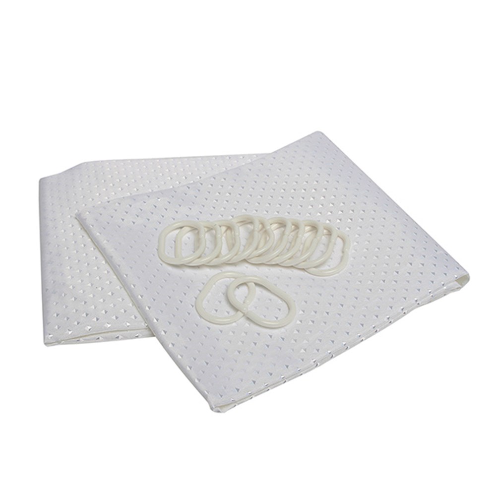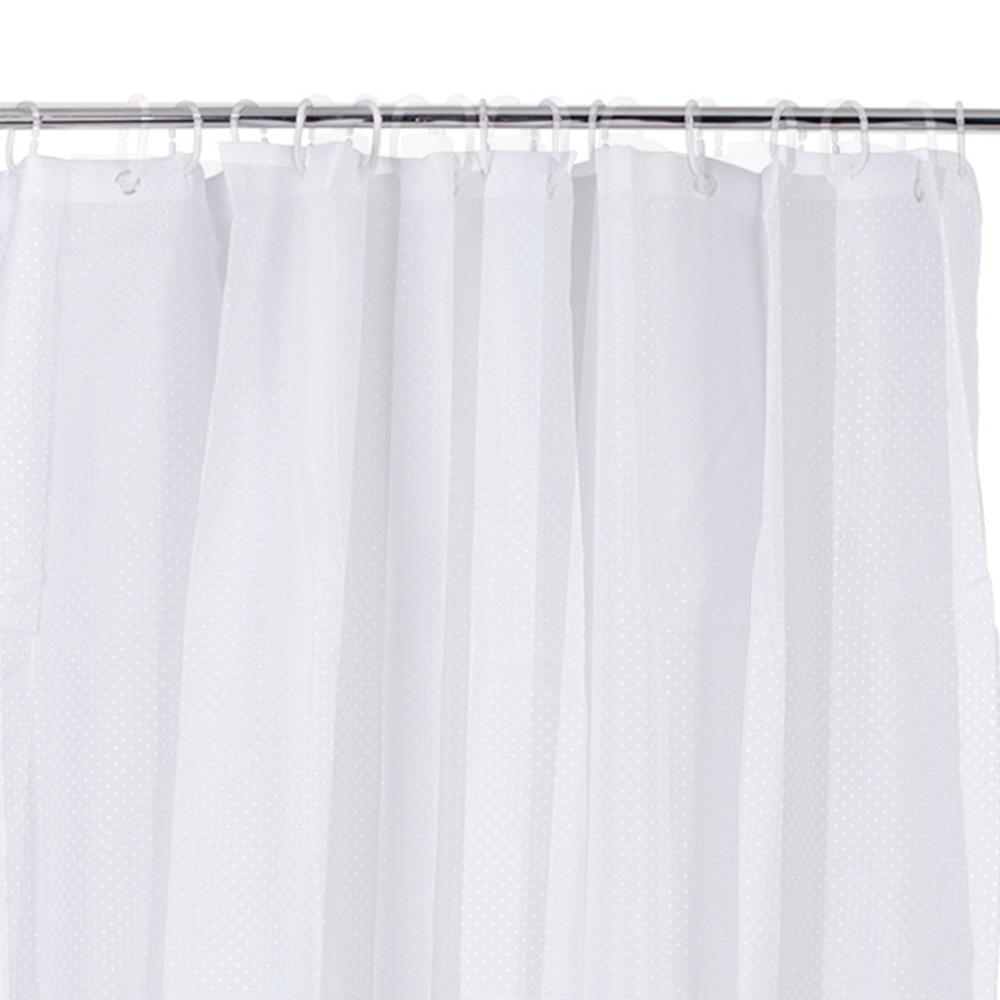 Shower Curtain Poly White Dobby Dot with Rings
