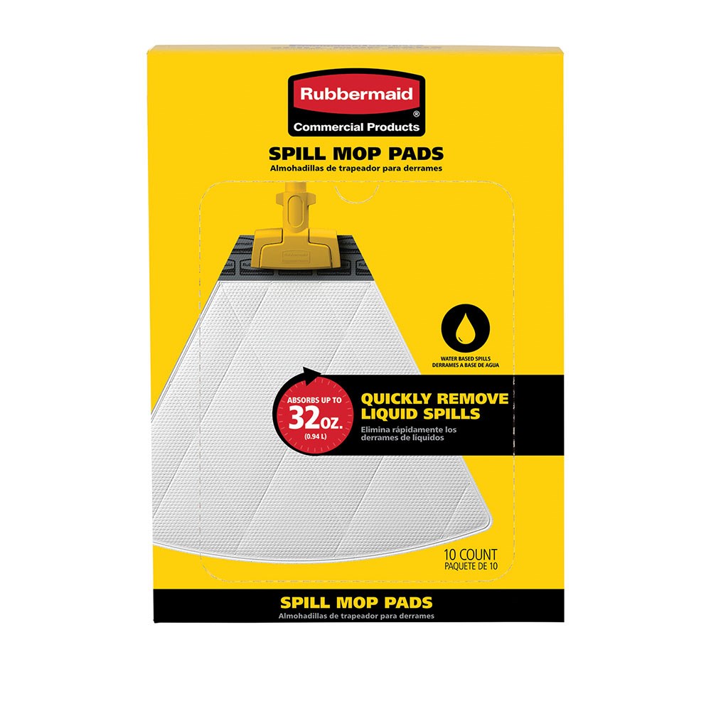 The Rubbermaid Commercial Spill Mop Pads come in a 10 pack dispensing carton that is compact enough to fit easily in most spaces. Each pad is made with highly absorbent material designed for quickly removing liquid, water-based spills. Pads turn liquid into gel so that once liquid is fully absorbed, it will not drip. Each pad absorbs up to 940ml of water.