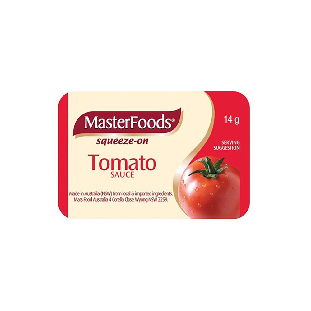 MasterFood's Tomato Sauce Portion Control comes in a convenient 14g sachet and carton of 100, making it perfect for serving at cafes, bed and breakfasts and on flights. No burger, chip, wedge or BBQ meat tastes the same without Masterfood's unique sauce. It is an essential in any office, home, school kitchen, canteen, cafe and hotel. 14 g per portion Carton of 300 Individual portions No artificial colours, flavours or preservatives